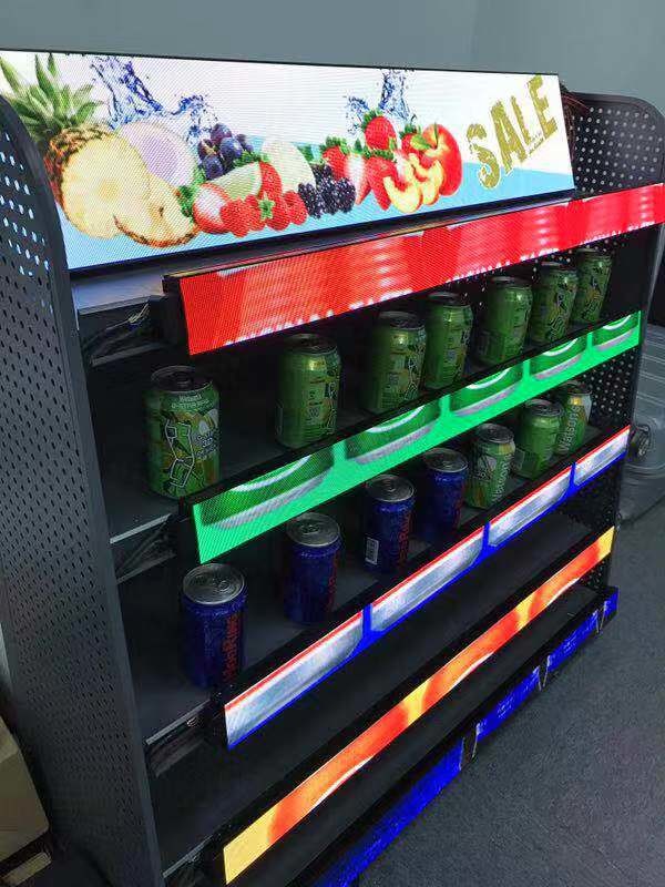Normal Raf LED Ekran ve raf Başlık LED Ekranı dahil olmak üzere Raf LED Ekranı. Rafın üst kısmına monte edilen Başlık rafı LED Ekranı, geniş ekran alanı daha fazla müşterinin dikkatini çekebilir, daha fazla müşteri ve kar getirebilir. Çoklu kurulum yöntemleri, kurulumu daha kolay hale getirir.
